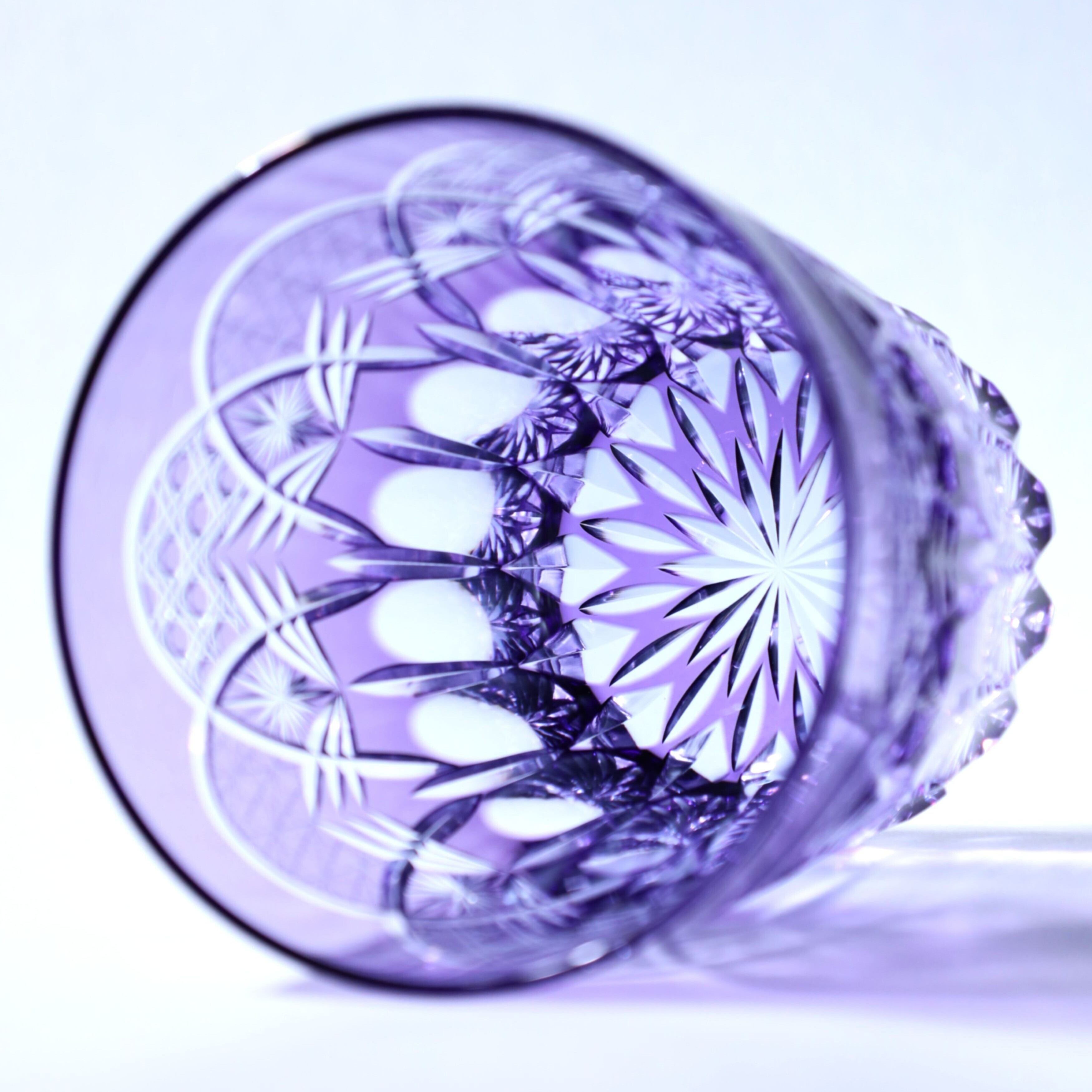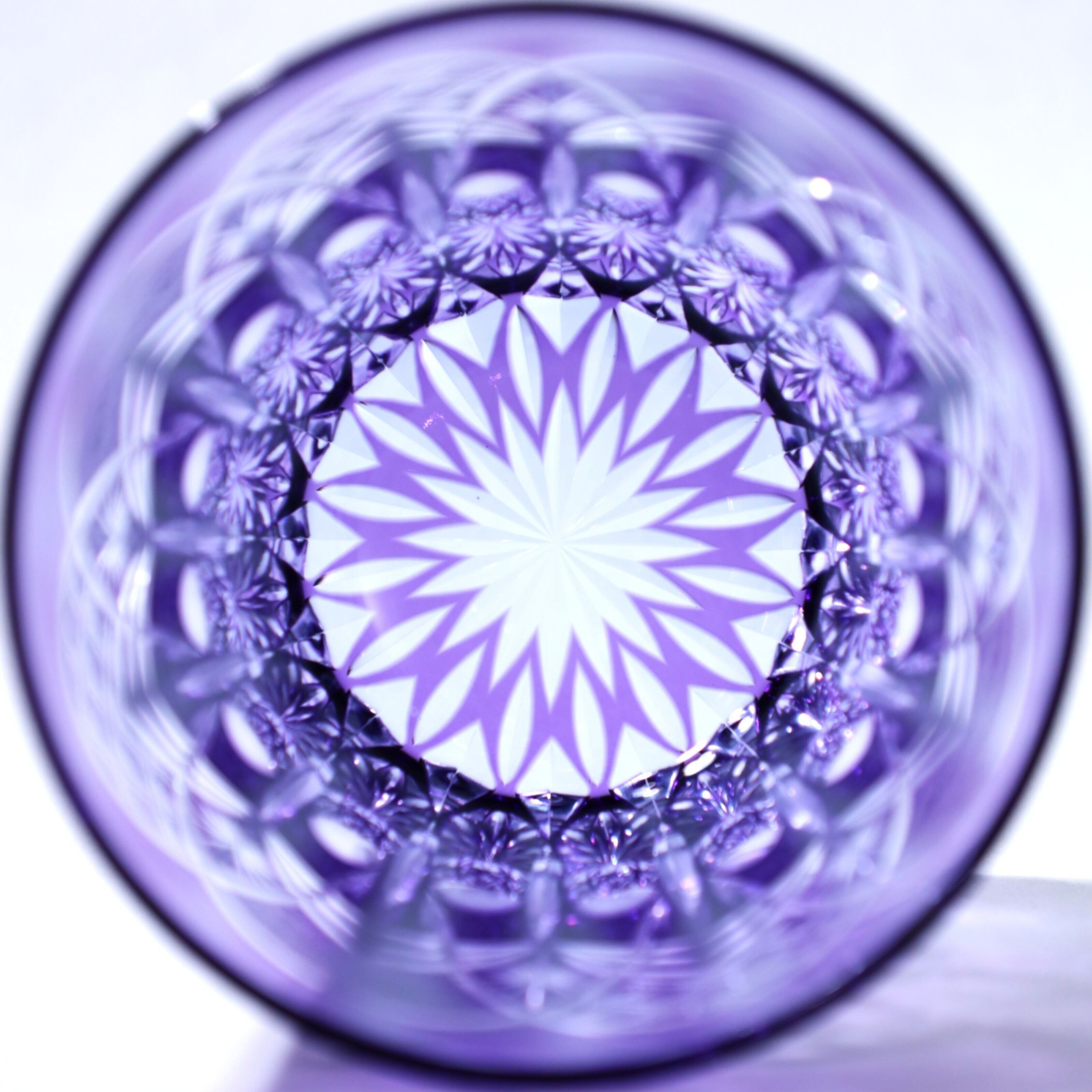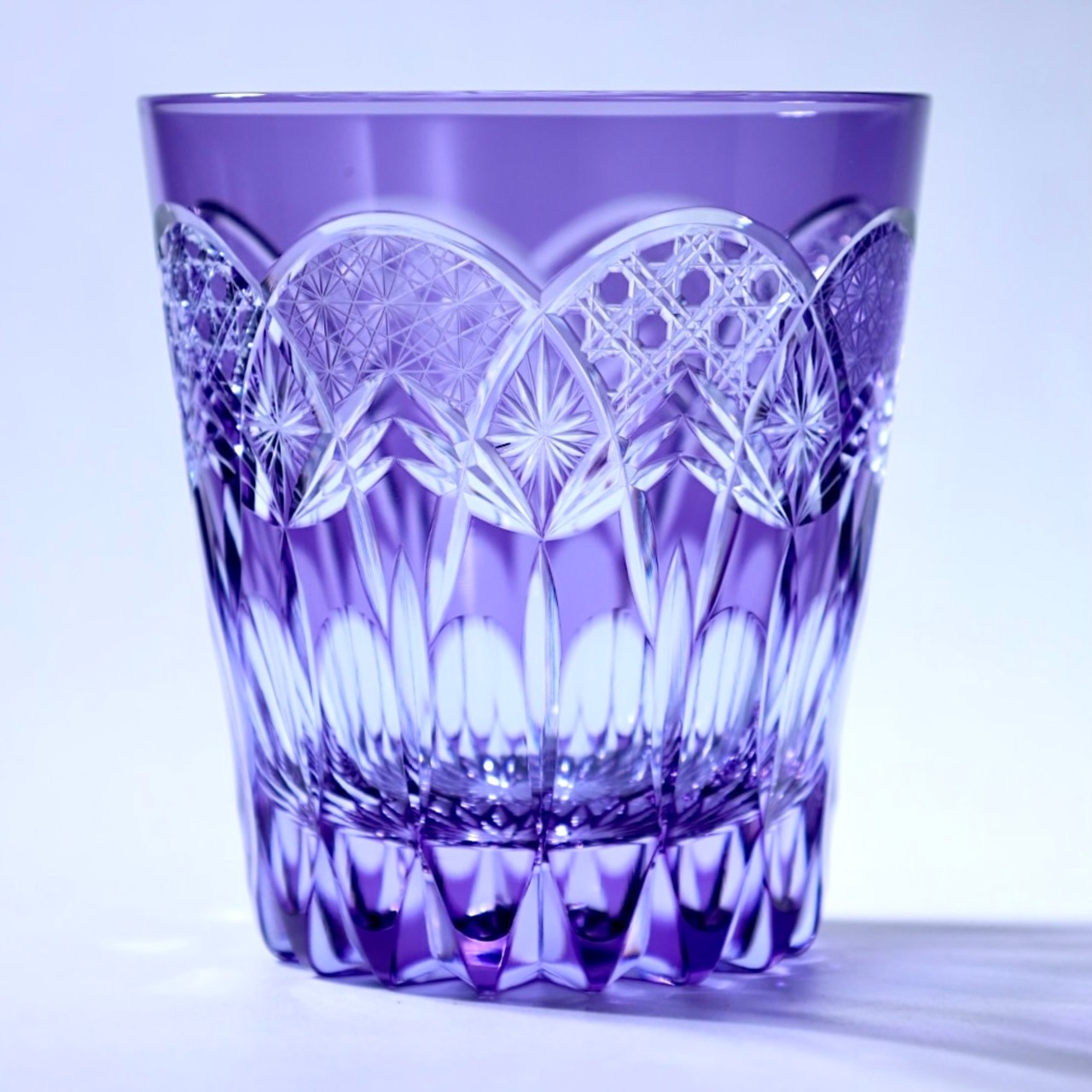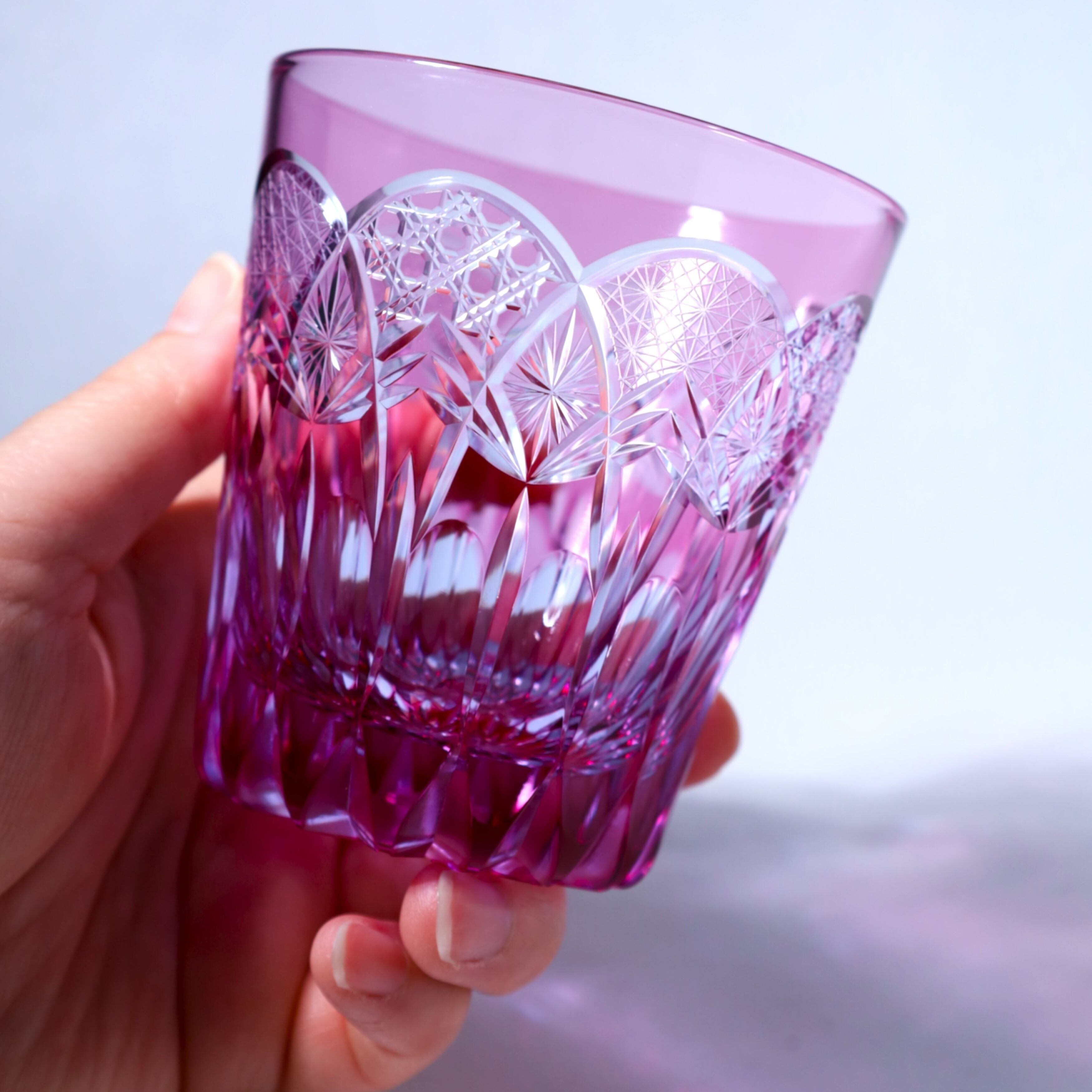 ステンドグラスが美しいパリの歴史ある建造物に、インスパイアを受け製作しました。鮮やかなパステルカラーに光を透過することで生まれる柔らかな影が、空間に彩りを添えます。底部のカットは万華鏡のように側面に映り込み、上から覗くと幻想的な世界が拡がります。伝統文様の「菊繋ぎ」や「八角籠目」を施し、繁栄や魔除けの意味を込めています。水やお茶、冷酒・ウィスキー・ワインなど幅広く楽しんでいただけます。大切な方への贈り物としても、永く愛されるお品です。